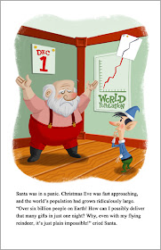 Unfortunately there just wasn’t room to include this page. Because of the way books are made, to add this one page I’d also have had to add three more, and that just wasn’t practical. Plus, if I had him disclose his plan here, then he'd be saying pretty much the same thing on two pages and it would kind of ruin the big reveal on page five. So I had to settle for the line about the “reindeer grinding and sifting process.”